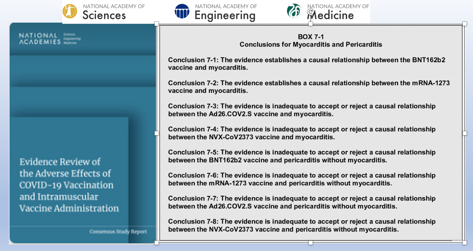 Bilim, Mühendislil ve Tıp Ulusal Akademisi bu güne kadar Covid aşılarını yan etkileri ile ilgili lehte ve aleyhteki delilleri değerlendirerek 2024 raporunu yayınladı.