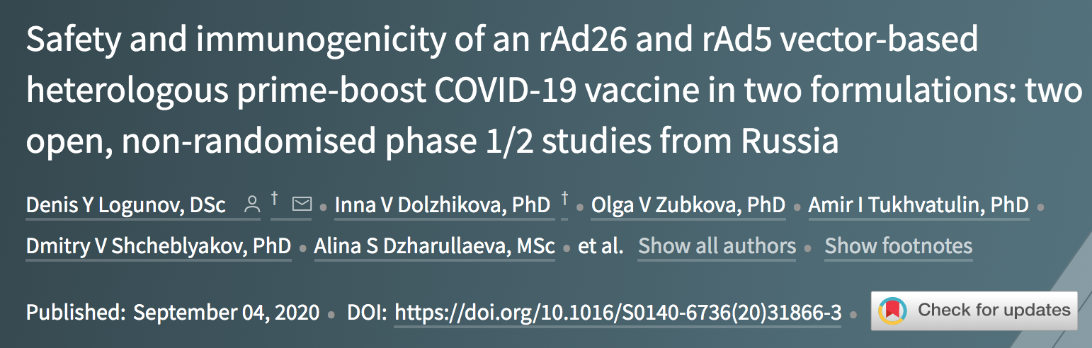 Rus bilim insanları yayınları ile ilgili verileri kamuoyuna açıklamaktan kaçınmakta (https://www.thelancet.com/journals/lancet/article/PIIS0140-6736(20)31866-3/fulltext). Bu konudaki kritikler ekteki makalede gösterilmiştir (https://cattiviscienziati.com/2020/09/07/note-of-concern/). Makaleye karşı olan bilim insanları: